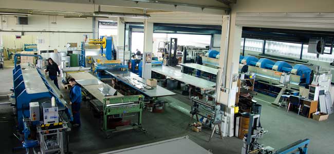 Für die Produktion stehen etwa 3.000 m2 überdachter Arbeits- und Lagerflächen zur Verfügung. Außerdem verfügen wir über 6.000 m2 teilweise überdachter Lagerflächen und Freilagerflächen für witterungsbeständige Materialien.